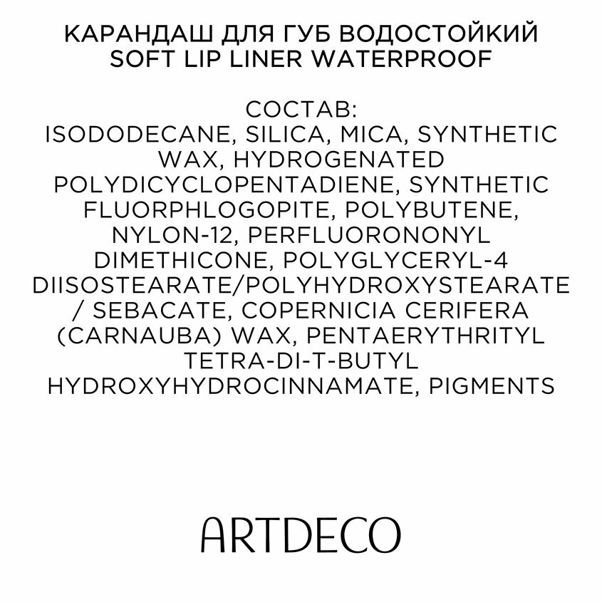 СохранитьКарандаши ARTDECO Make Up Soft Lip Liner Waterproof, Карандаш для губ водостойкий, 131 интересное: