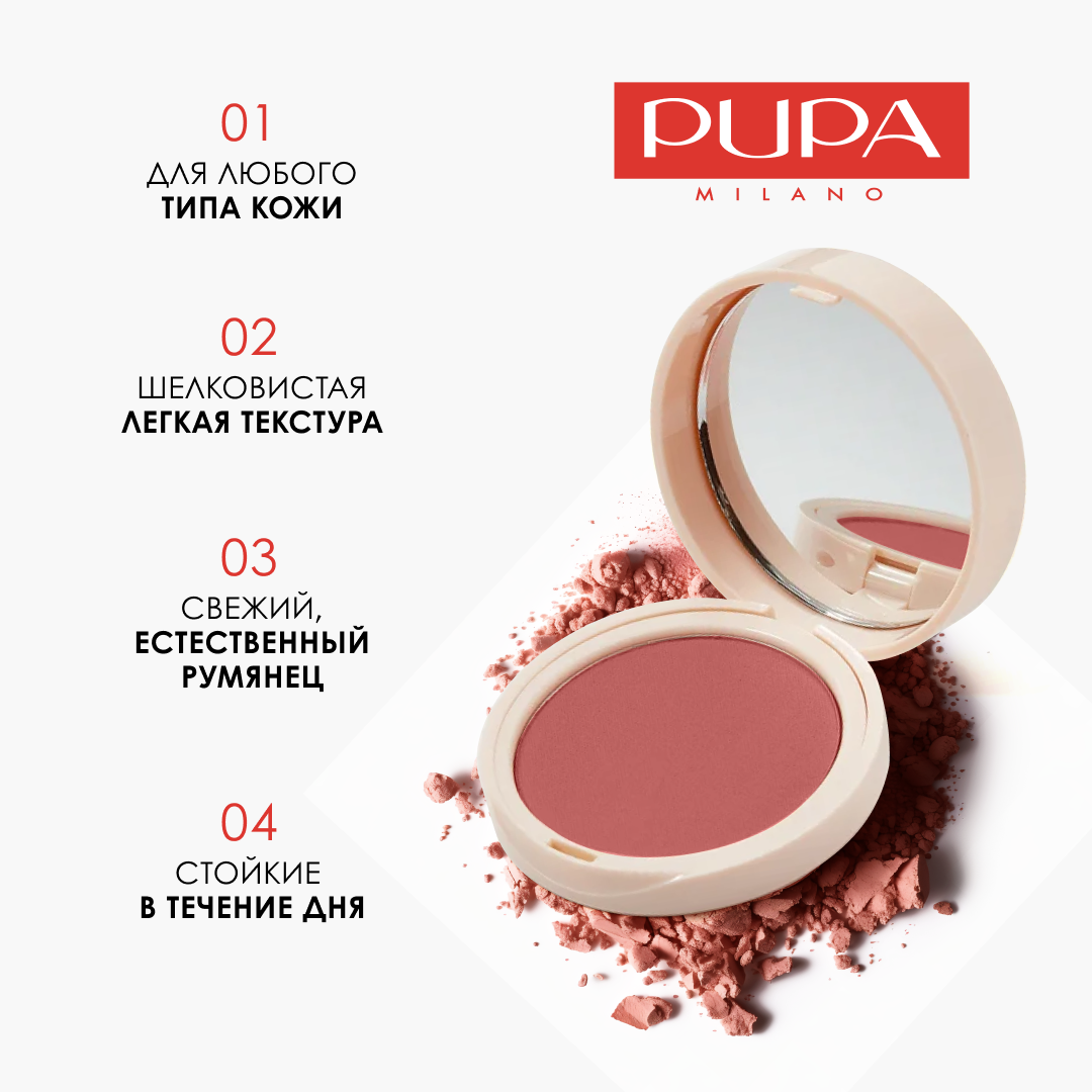 PUPA Румяна для лица компактные матовые WONDER ME BLUSH тон 004 Истинная любовь