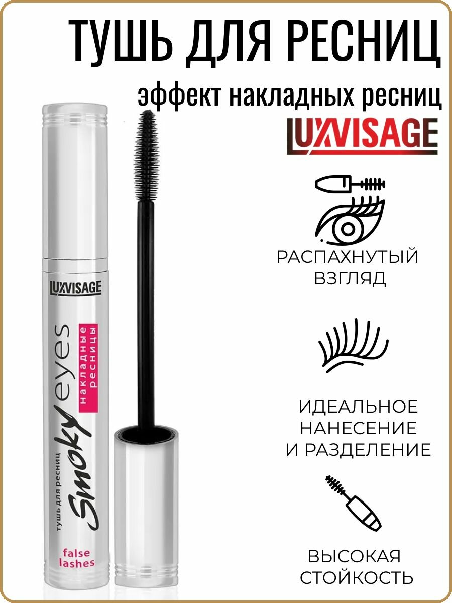 LUXVISAGE Тушь для ресниц Smoky Eyes "Накладные ресницы" False Lashes, черная, 7 мл