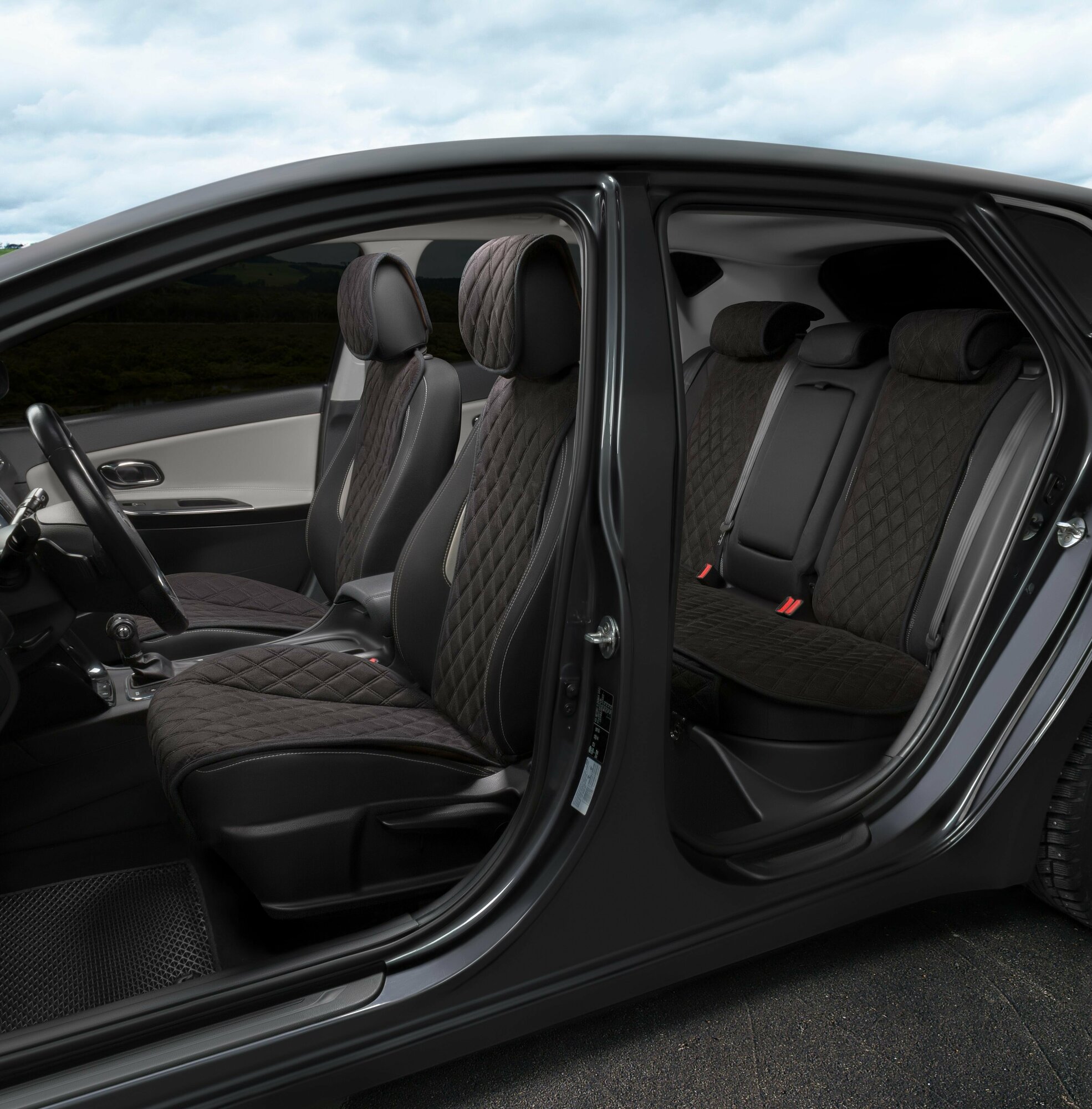 Купить Накидки для Аурус Комендант (2022-2024) внедорожник 5 дверей / Aurus Komendant на весь салон Turbo, Алькантара, Черный