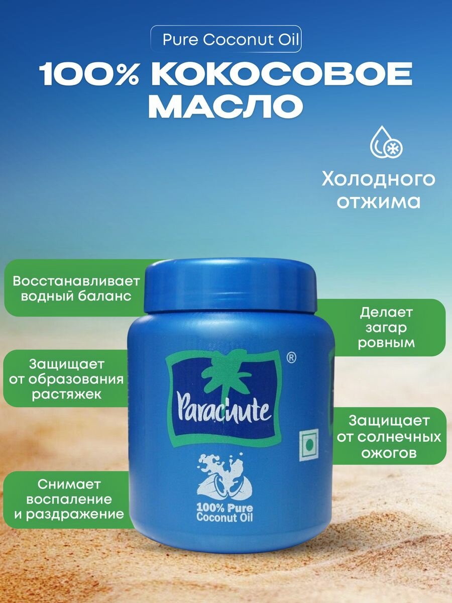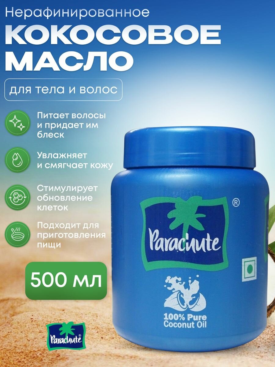 Масло кокосовое Parachute, 100% натуральное индийское косметическое масло для волос, лица и тела, 500 мл