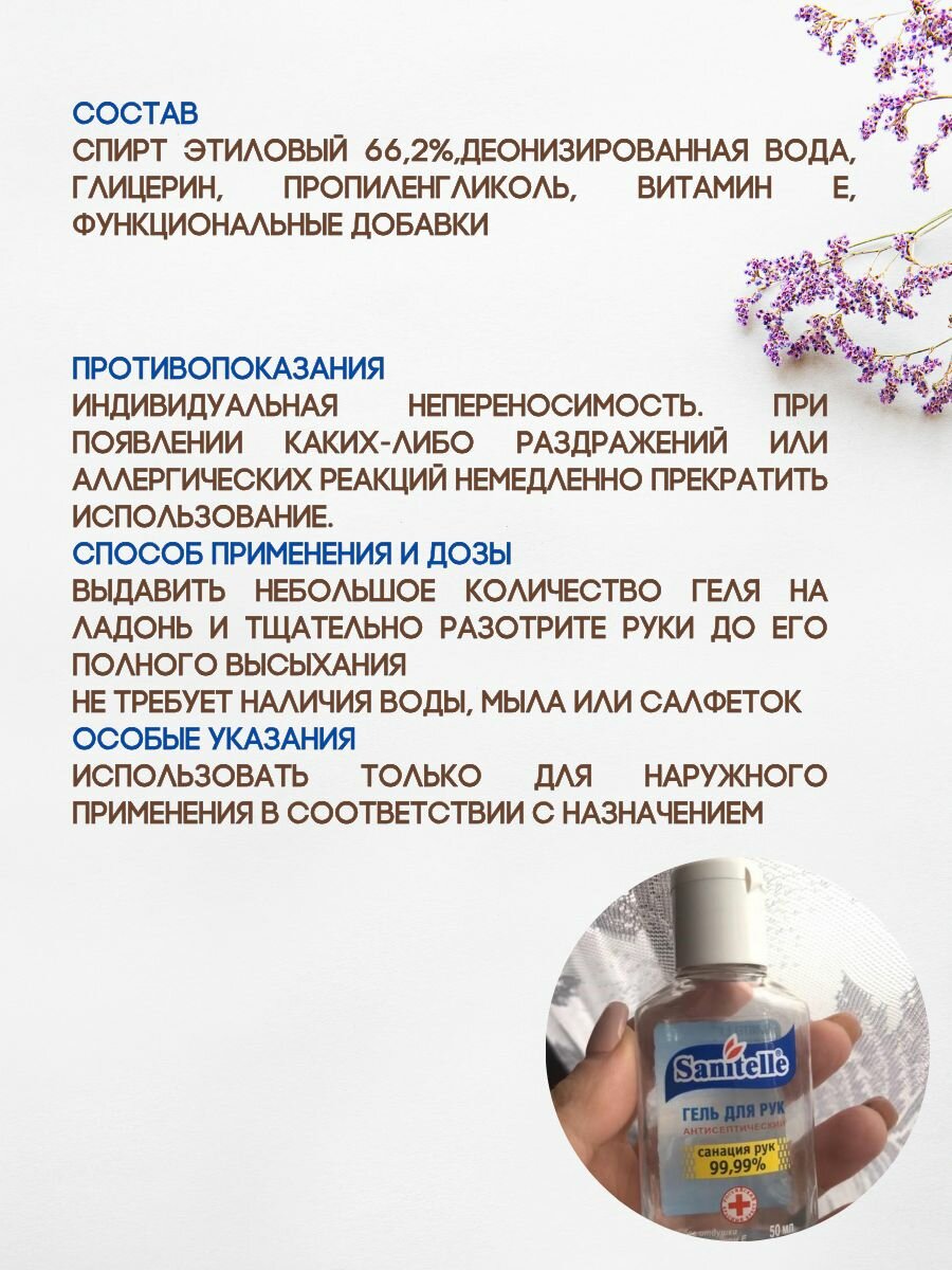| Отзыв: | Антисептический гель для рук Sanitelle хорошо дезинфицирует кожу, особенно актуально при нахождении вне зоны доступа к воде и мылу.