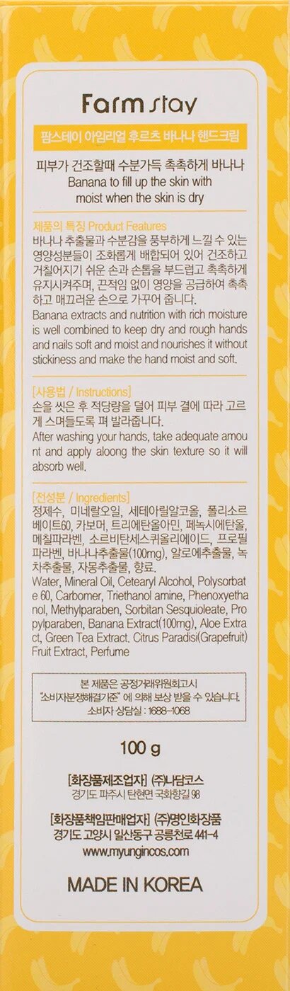 Крем для рук с экстрактом банана, 100г, FarmStay