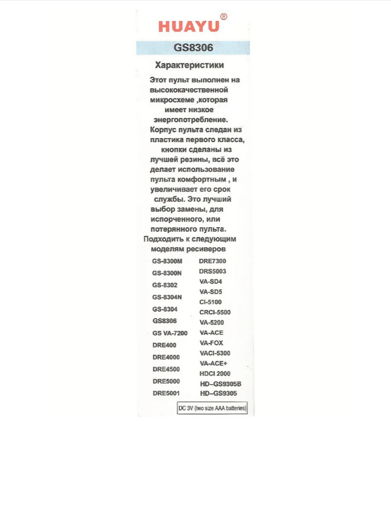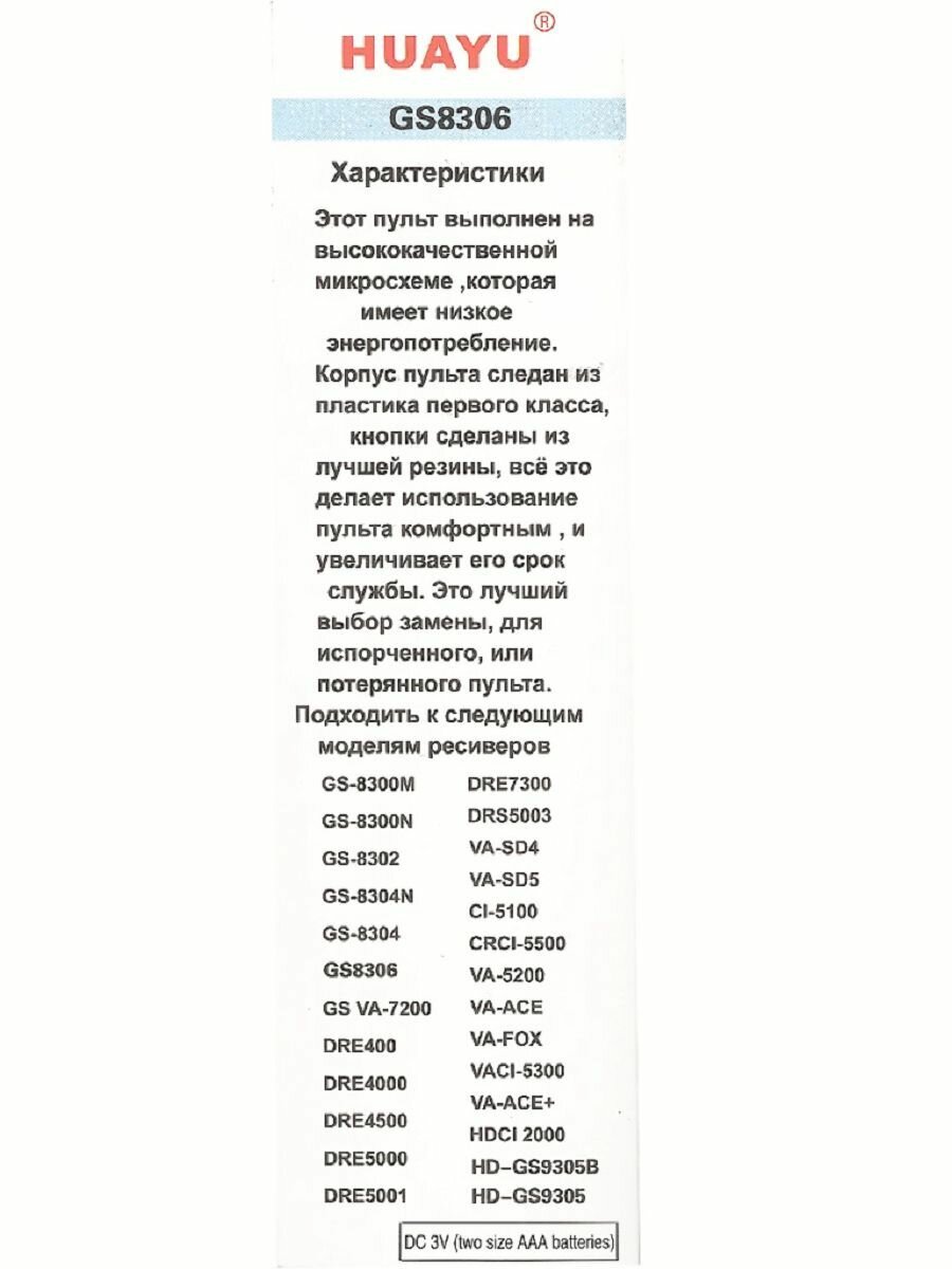 Пульт ДУ Huayu GS-8306 для ресивера Триколор с батарейками интересное: