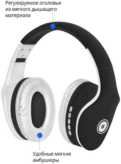 Наушники беспроводные Defender FreeMotion B525 черный+белый, Bluetooth 63525 .