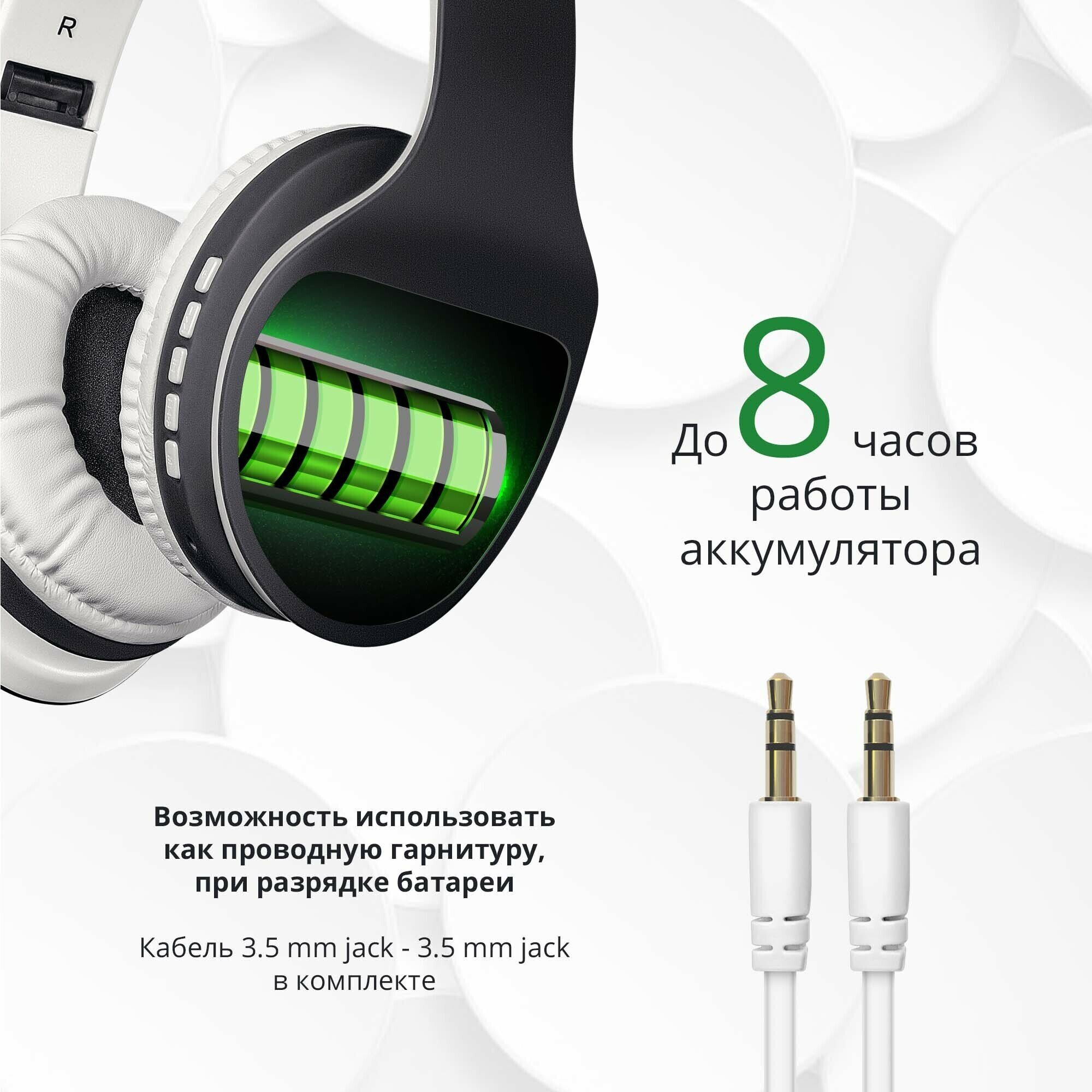 Наушники беспроводные большие Defender FreeMotion 525, Bluetooth 5.0, microSD, MP3 плеер FM радио, AUX кабель, черный + белый