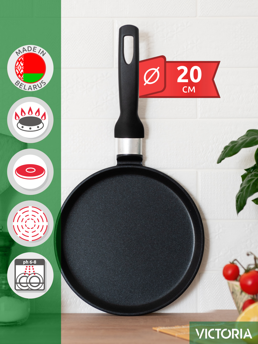 Сковорода блинная с антипригарным покрытием, блинница 22 см, VICTORIA, G0222