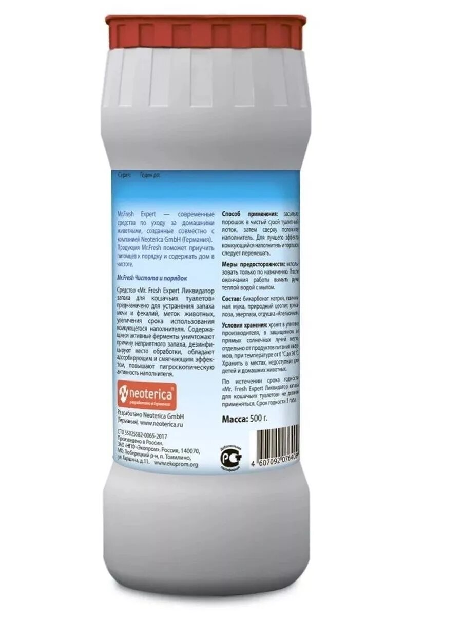 Mr.Fresh Expert 2в1 Ликвидатор запаха для кошачьих туалетов (порошок), 500 г