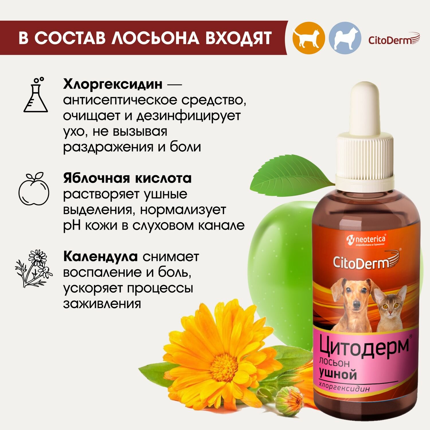 Лосьон для ушей кошек и собак CitoDerm с хлоргексидином 50 мл интересное: