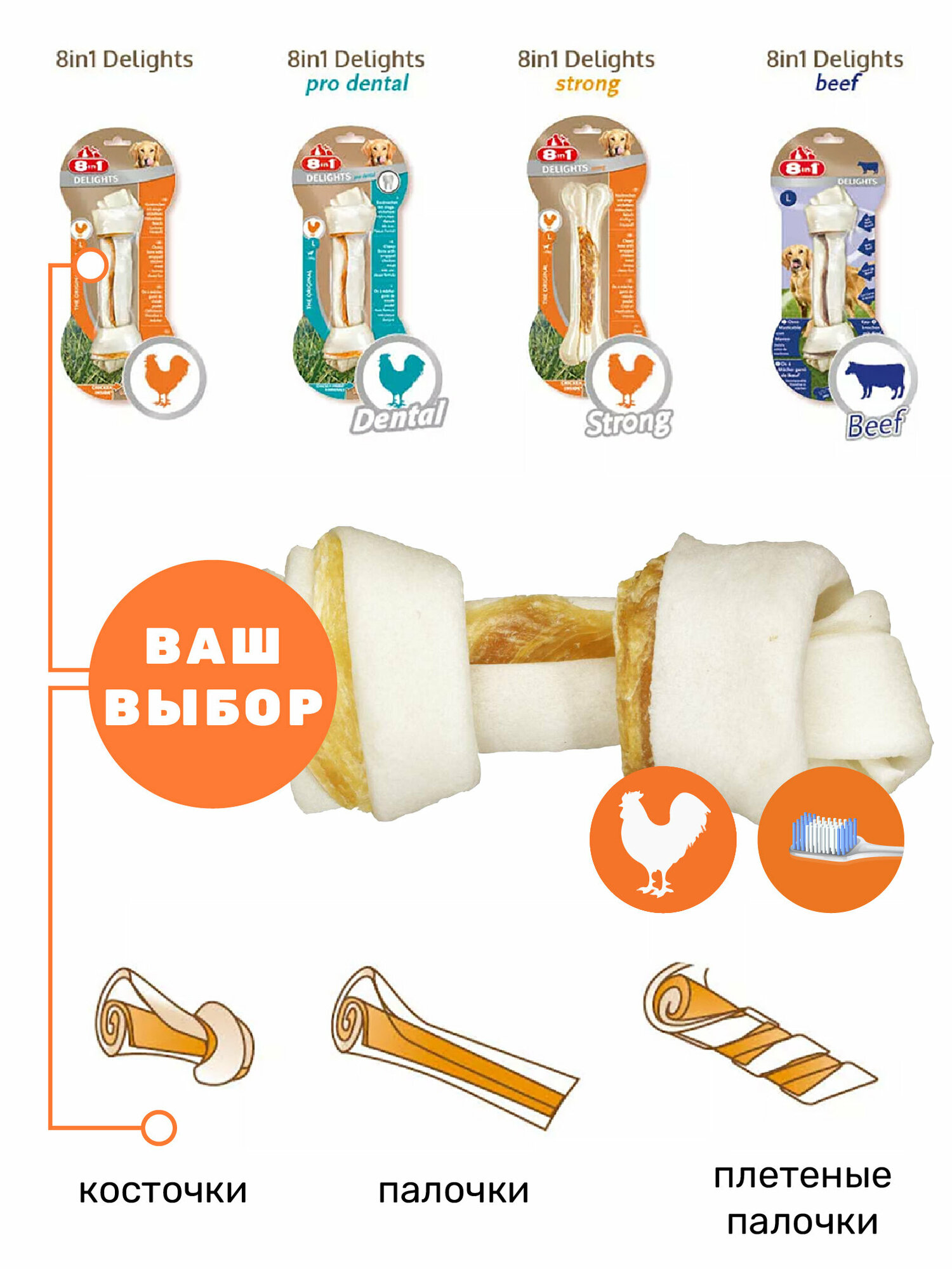 Косточка 8in1 Delights для собак, с куриным мясом в жесткой говяжьей коже, S (11 см), 1 шт. 35 г