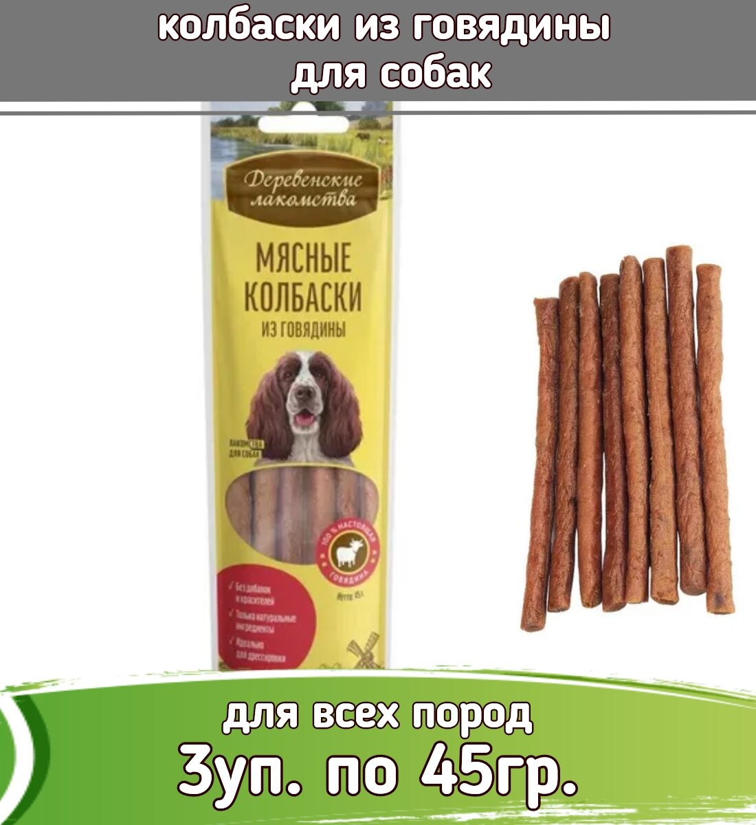 Ниже Вы можете прочитать отзывы на Деревенские лакомства 3шт х 45г колбаски из говядины для собак, ознакомится с подробными характеристиками, посмотреть интересные обзоры и фотографии на Деревенские лакомства 3шт х 45г колбаски из говядины для собак.