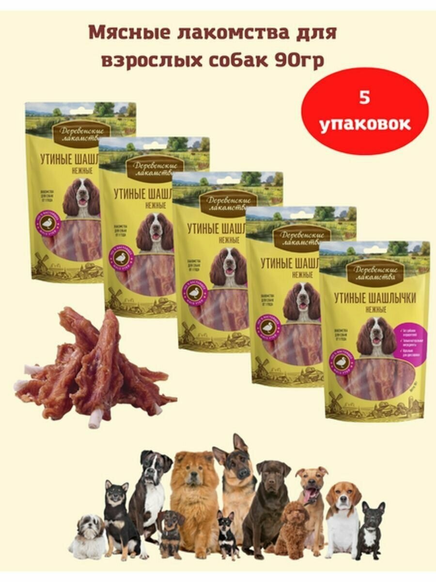 Шашлычки утиные "Деревенские лакомства" для собак, нежные, 90 г