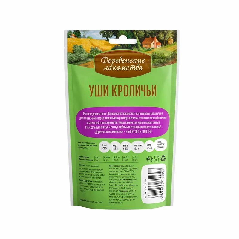 Деревенские лакомства 79711397 для собак мини-пород Уши кроличьи 15г