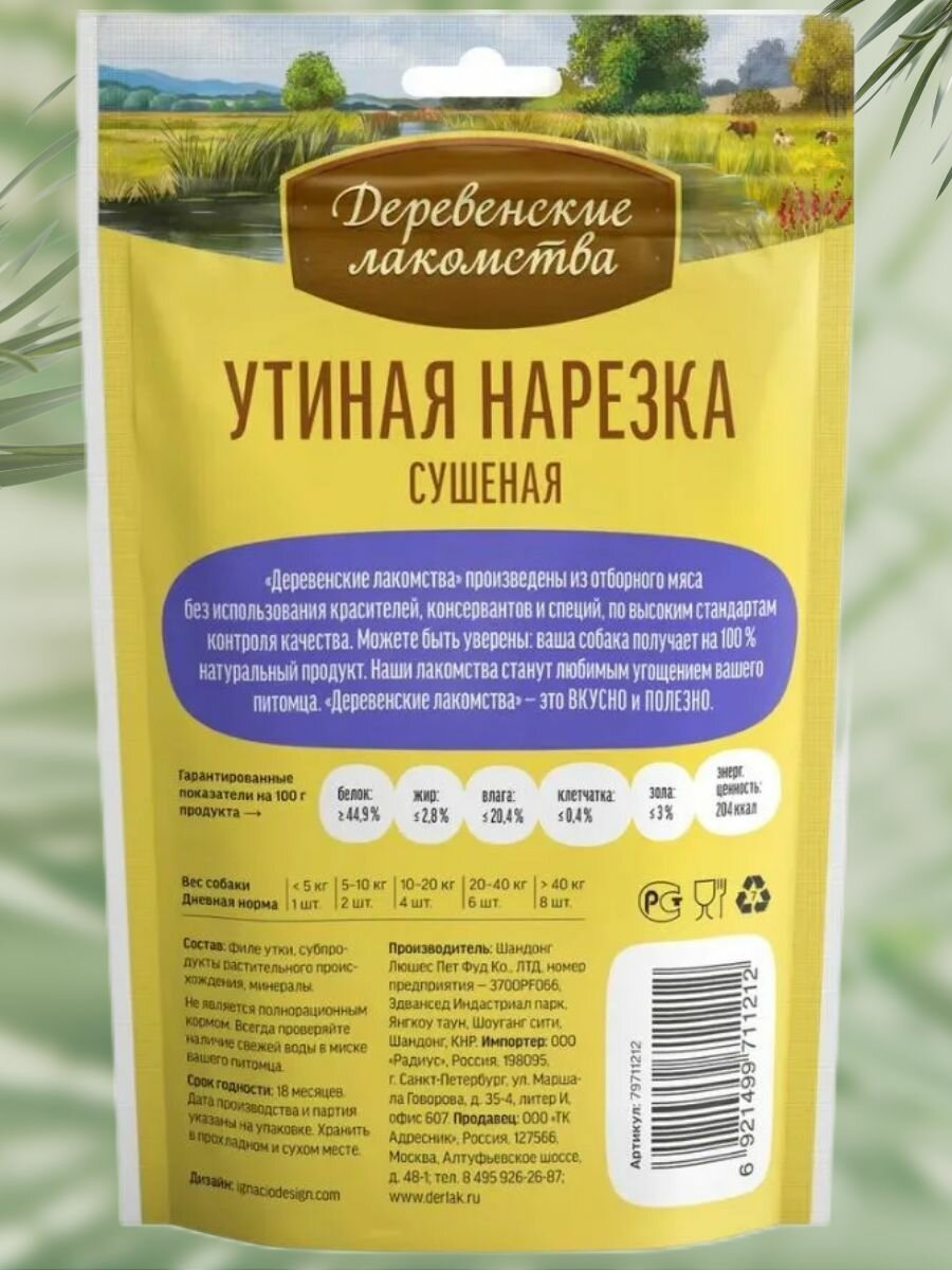 Деревенские лакомства 1шт х 90г утиная нарезка для собак