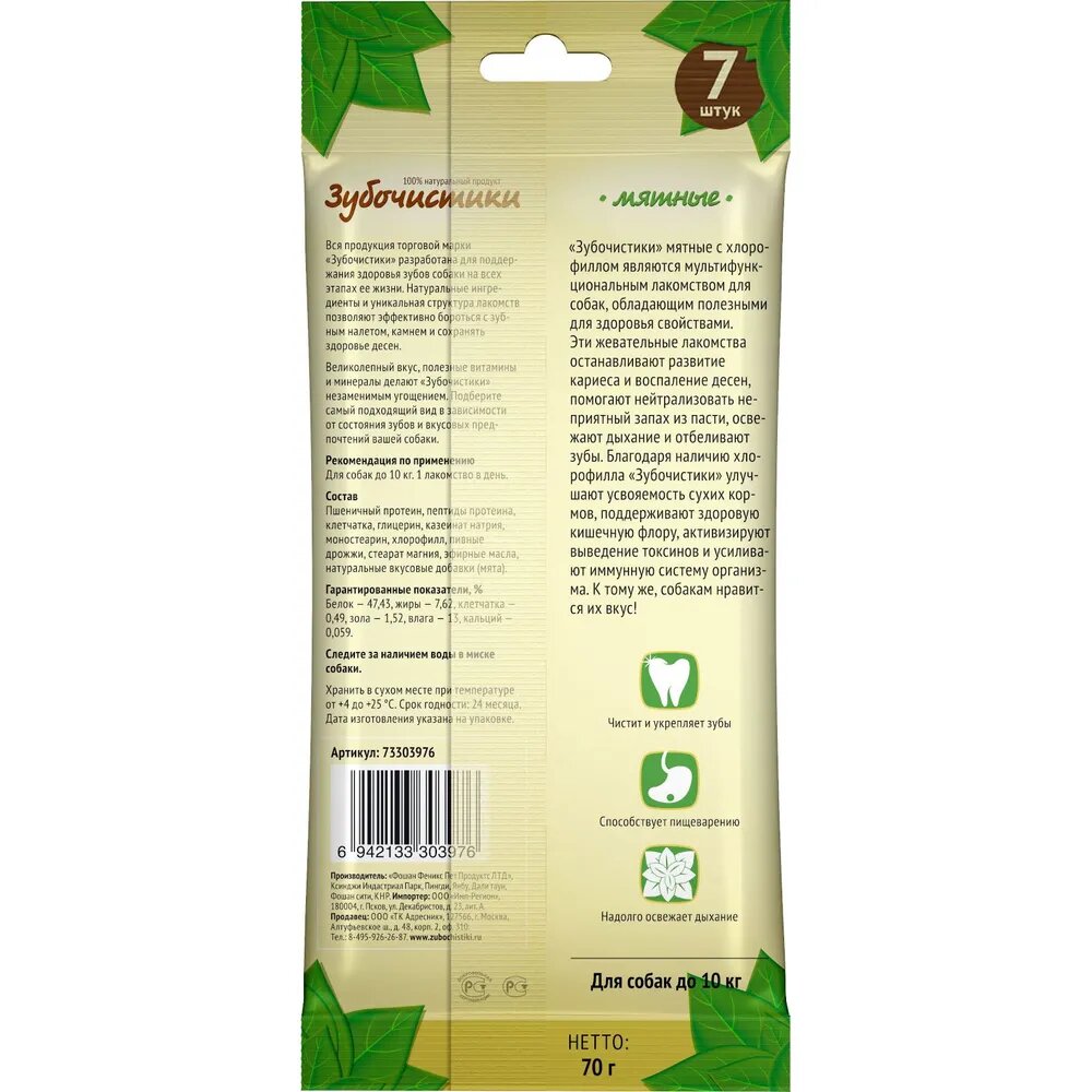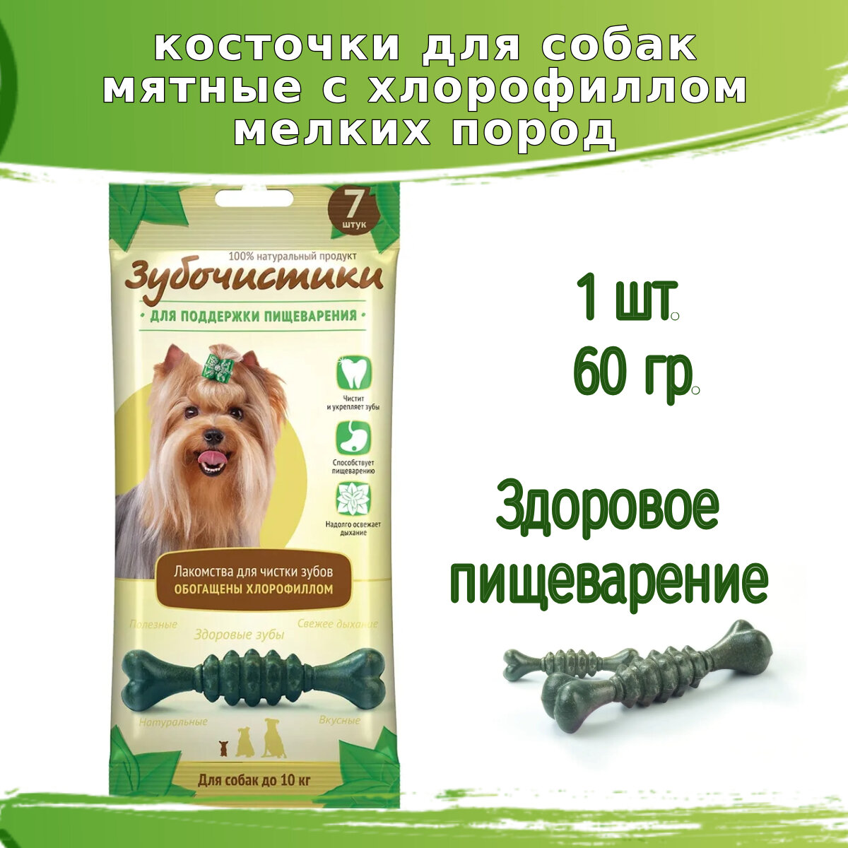 Лакомство для собак Зубочистики Мятные с хлорофиллом для собак мелких пород, 60 г 7 шт в уп.