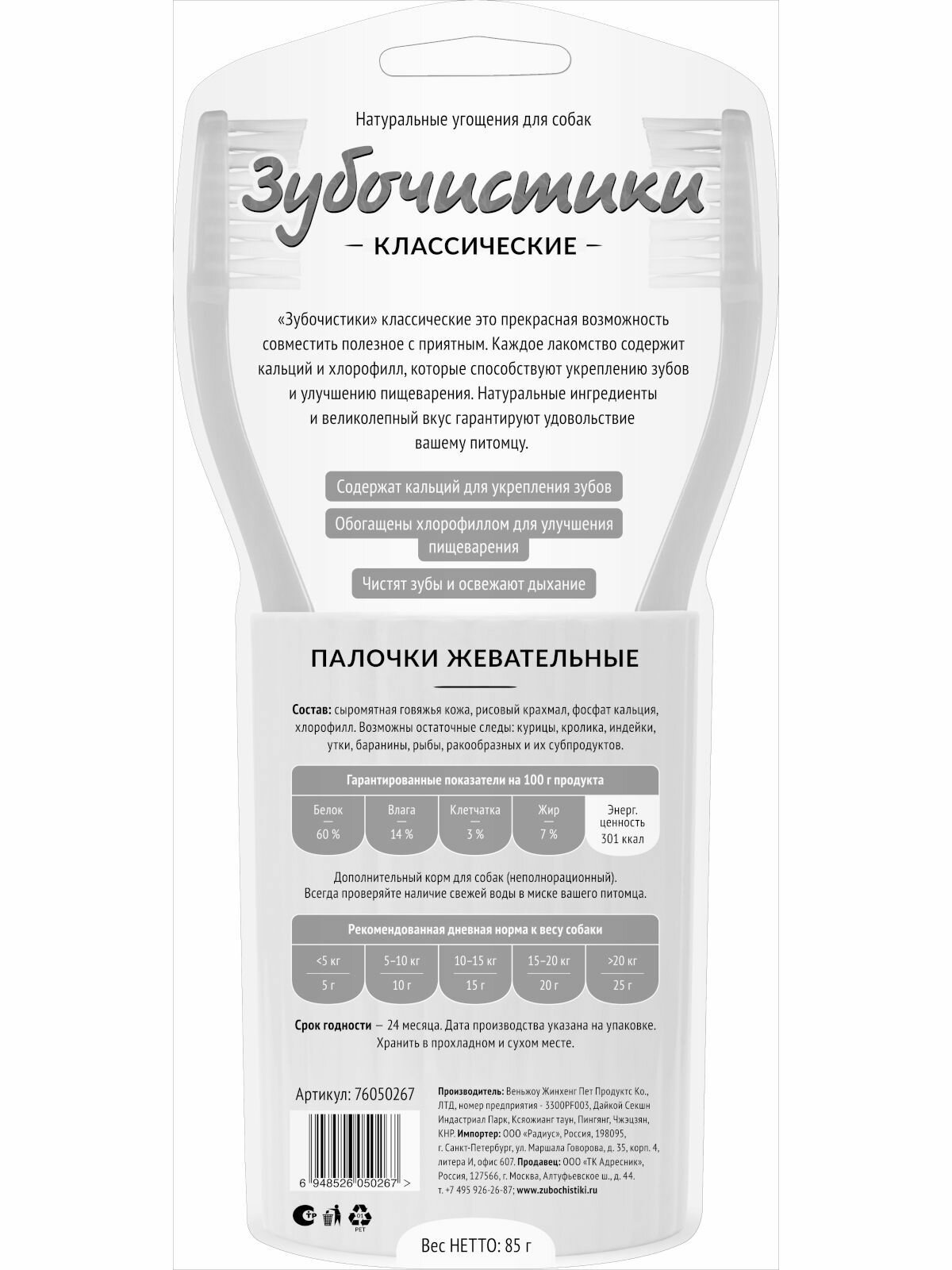 Зубочистики Классические Лакомство д/собак Палочки жевательные 10 шт 85 г