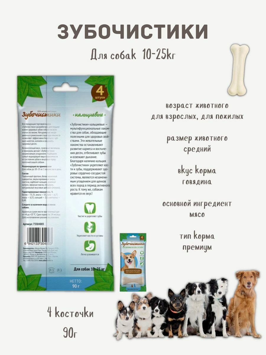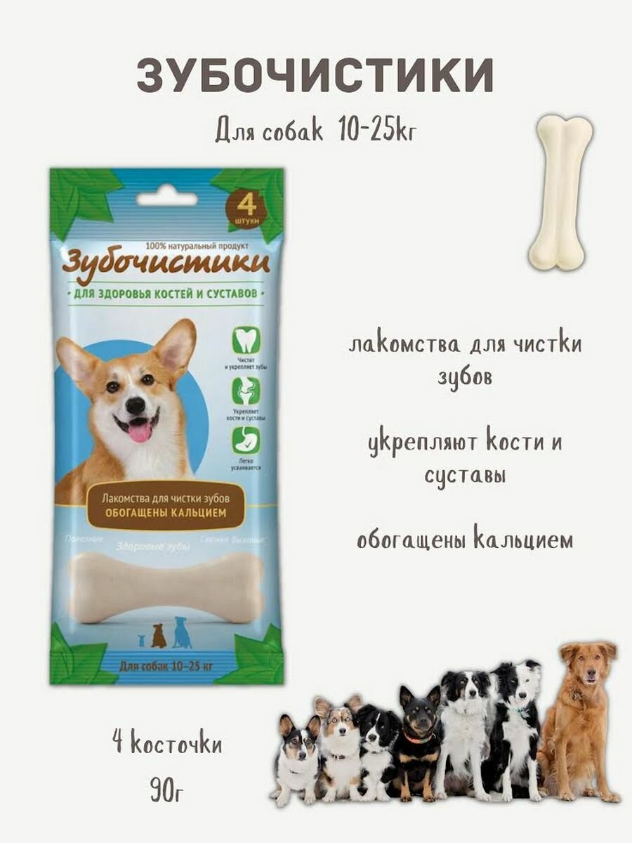 Косточка Лакомство зубочистики для собак средних пород для зубов с кальцием (4 шт)