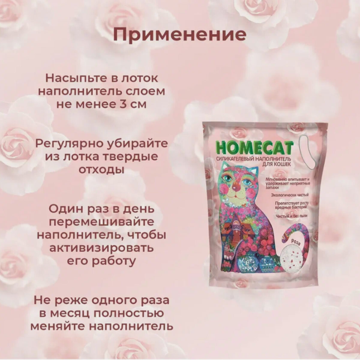 Наполнитель HOMECAT Роза силикагелевый для кошачьих туалетов с ароматом розы 12,5л