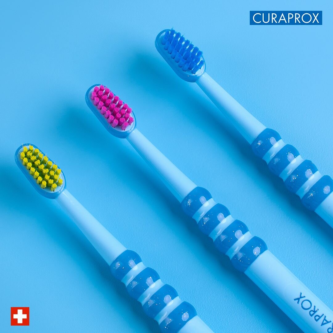 Детская зубная щетка Curaprox c гуммированной ручкой, голубая