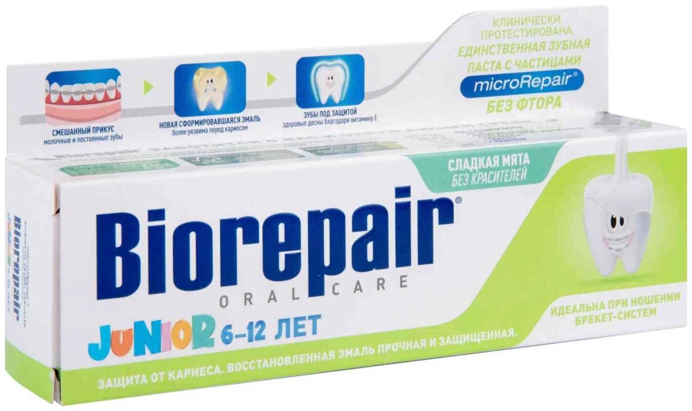 Купить Зубная паста Biorepair Junior со вкусом мяты (от 6 до 12 лет), 75 мл
