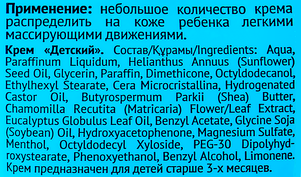 Хорошо помогает от раздражений,зимой с ним вообще не расстаюсь) Недостатки: Несколько резкий и для меня,немного неприятный запах. Но в целом,хороший крем,который справляется со своей задачей на отлично,советую покупать не только детям,но и взрослым) |