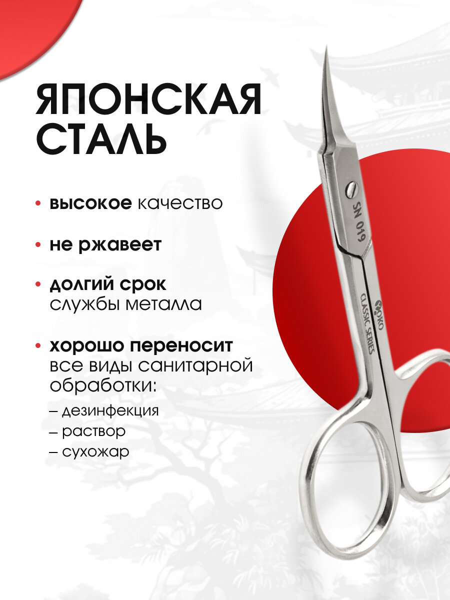 Ножницы маникюрные для кутикулы SN 019, изогнутые, ручная заточка, 95 мм. Yoko интересное: