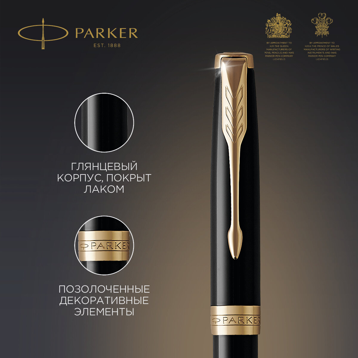 Ручка шариковая PARKER «Sonnet Core Lacquer Black GT», корпус черный глянцевый лак, позолоченные детали, черная
