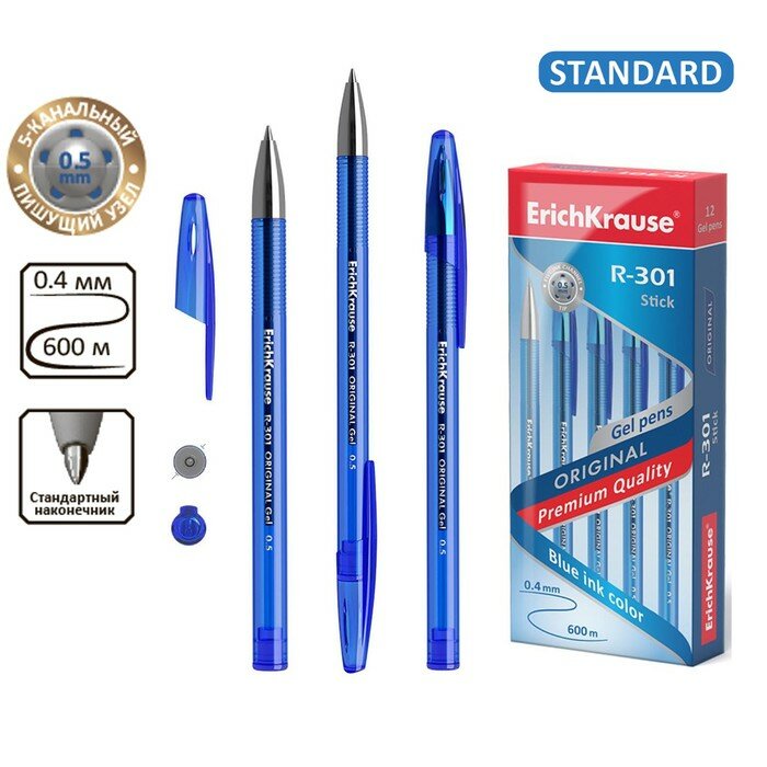 ErichKrause Набор гелевых ручек R-301 Original Gel, 0.5 мм (40318/42721/42722/45156), cиний цвет чернил, 12 шт.