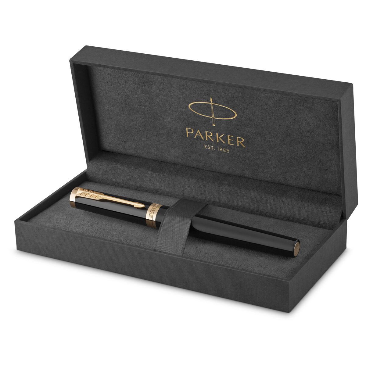 Ручка перьевая Parker "IM Core Black Lacquer GT", корпус черный глянцевый лак, позолоченные детали, синяя (1931645)