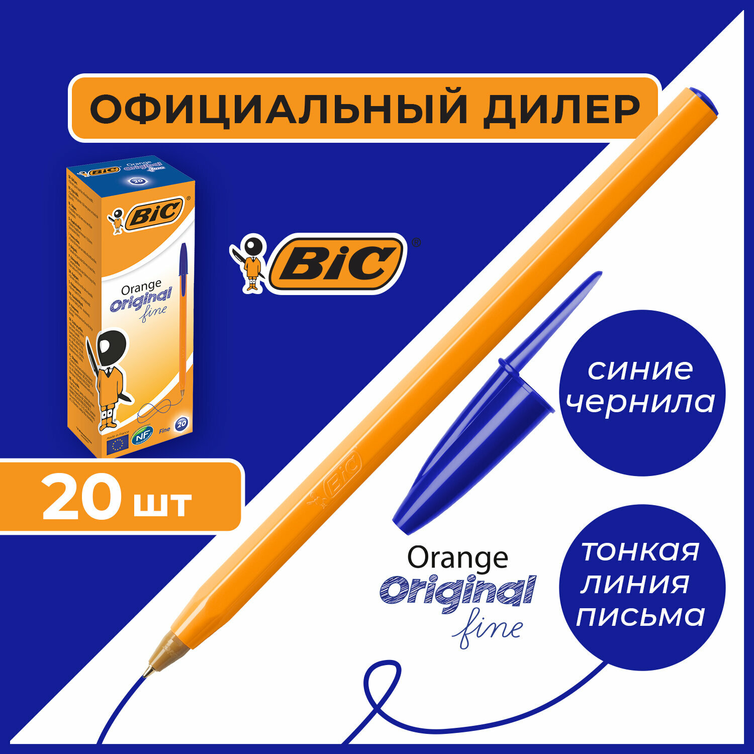 Купить Ручки шариковые набор / комплект Bic Orange, 20 штук, Синяя, корпус оранжевый, 0,8мм, линия 0,3мм, 880485