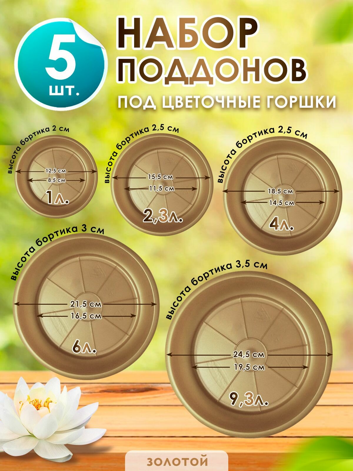 Набор поддон-подставка для цветочного горшка ,кашпо , золотой -5 шт. интересное: