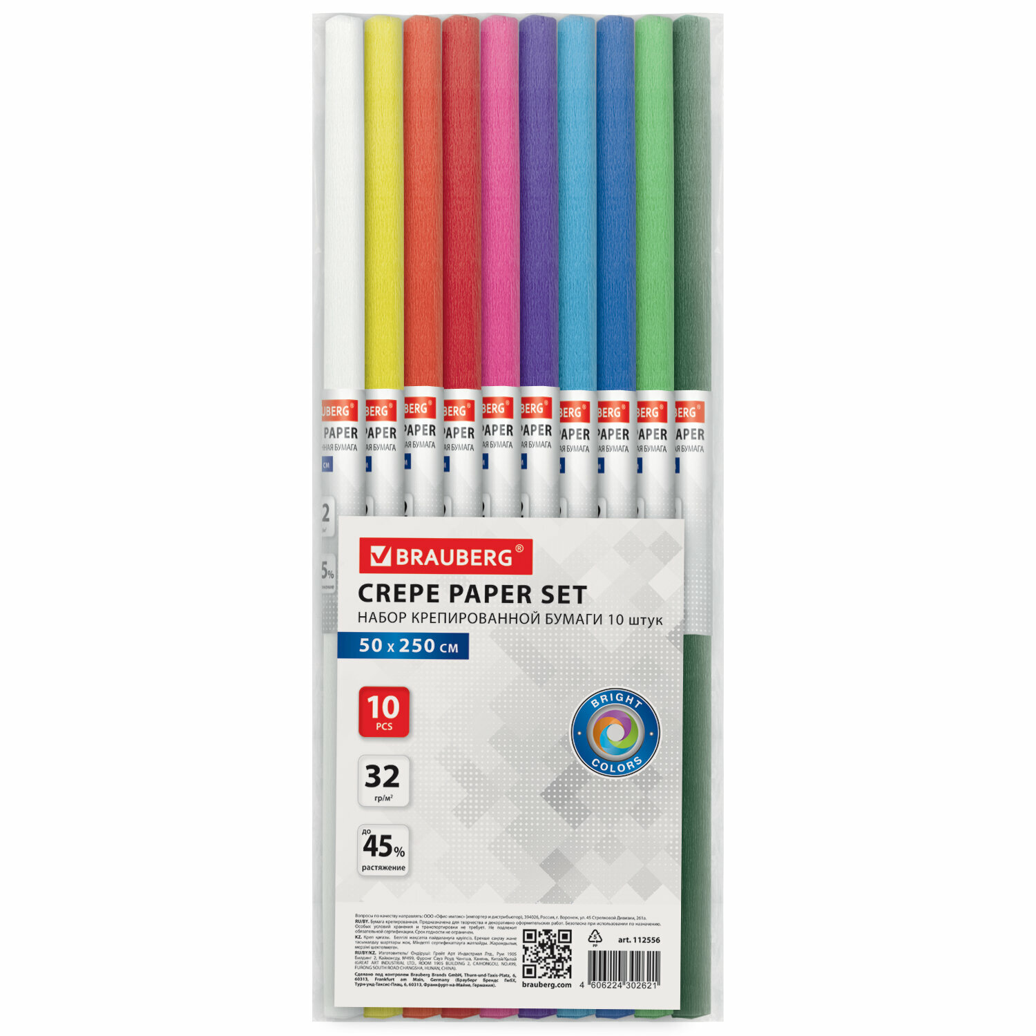 СохранитьБумага гофрированная цветная / крепированная / креповая упаковочная для подарков и цветов 32г/м, 10 рулонов, 50х250см, яркие цв, Brauberg интересное: