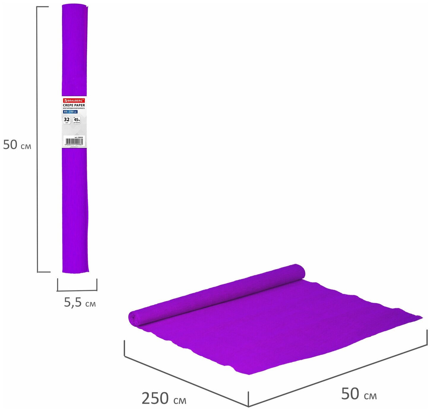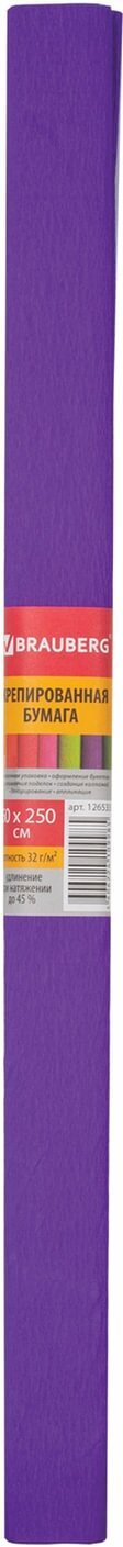 Бумага цветная крепированная Brauberg, 50x250см, плотная, растяжение до 45%, 32 г/кв.м, фиолетовая, в рулоне, 1 лист (126533)