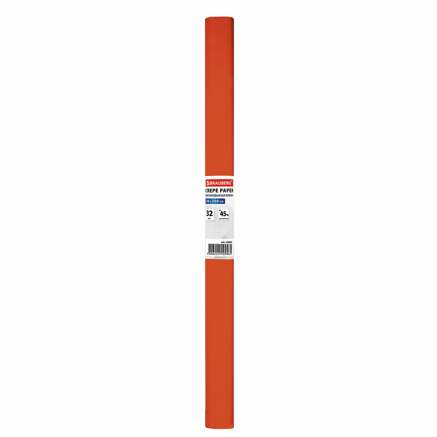 Цветная бумага крепированная плотная, растяжение до 45%, 32 г/м2, BRAUBERG, рулон, оранжевая, 50х250 см, 126530, (10 шт.)
