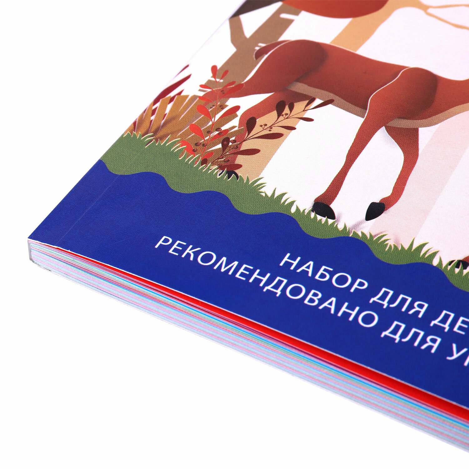 Цветная бумага Brauberg "Олени", А4, 2-сторонняя, мелованная, 64 листа, 16 цветов, склейка, 200х280 мм