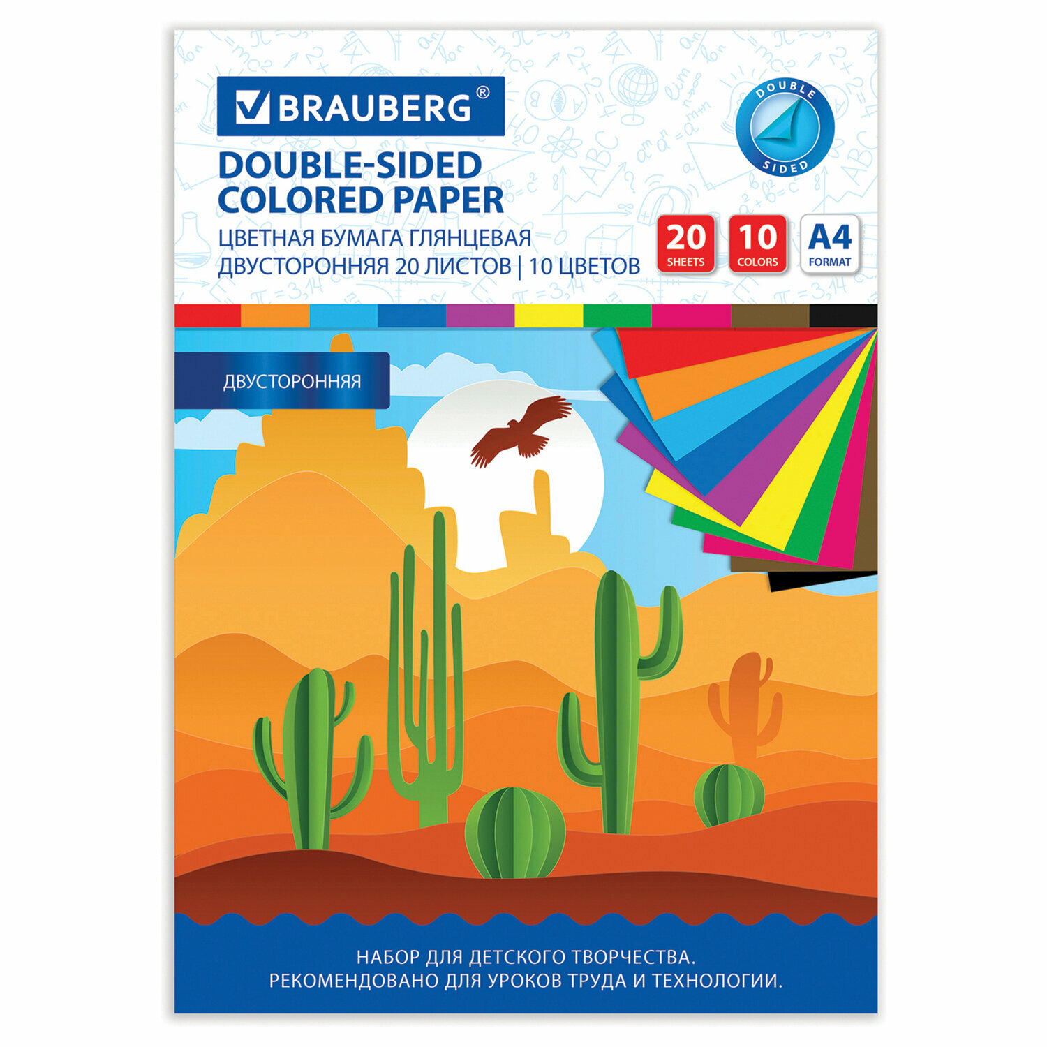 Цветная бумага формата А4, двусторонняя тонированная в массе для творчества / оформления А4 80 листов 10 цветов, 80 г/м2, Brauberg, 113503