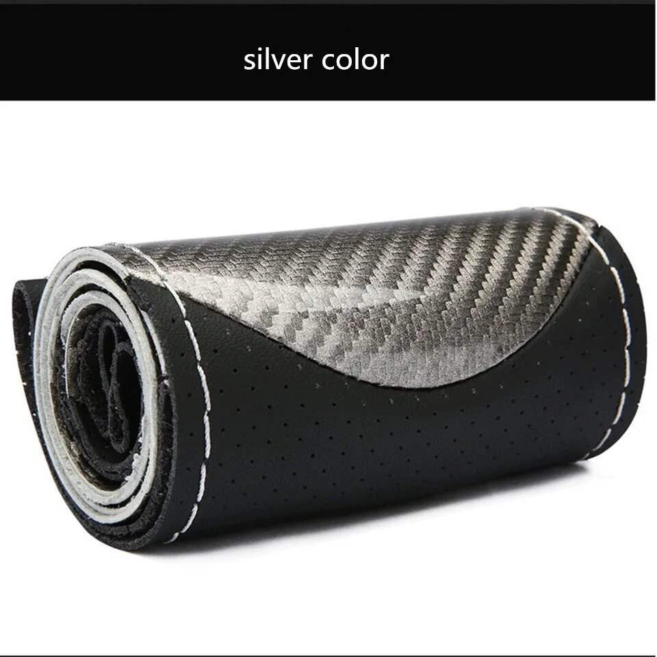 Чехол для руля 38 см мягкая Нескользящая ручная швейная износостойкая оплетка для руля автомобиля с иглами, Silver color
