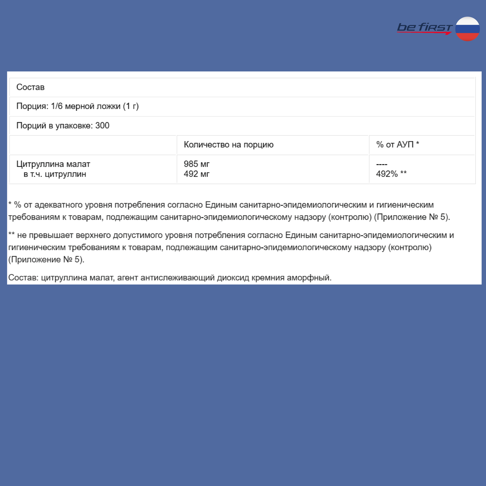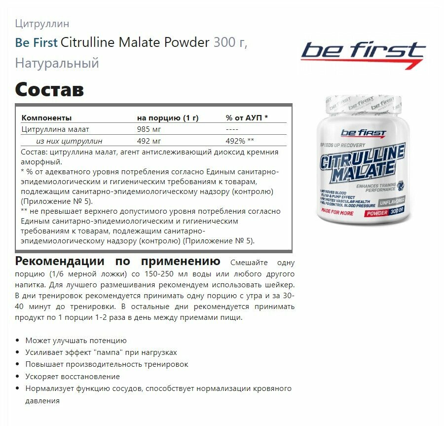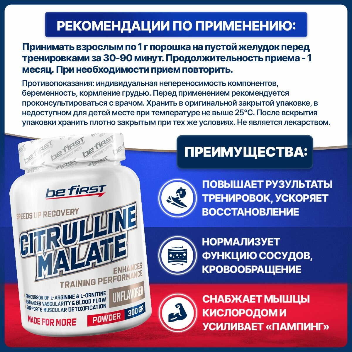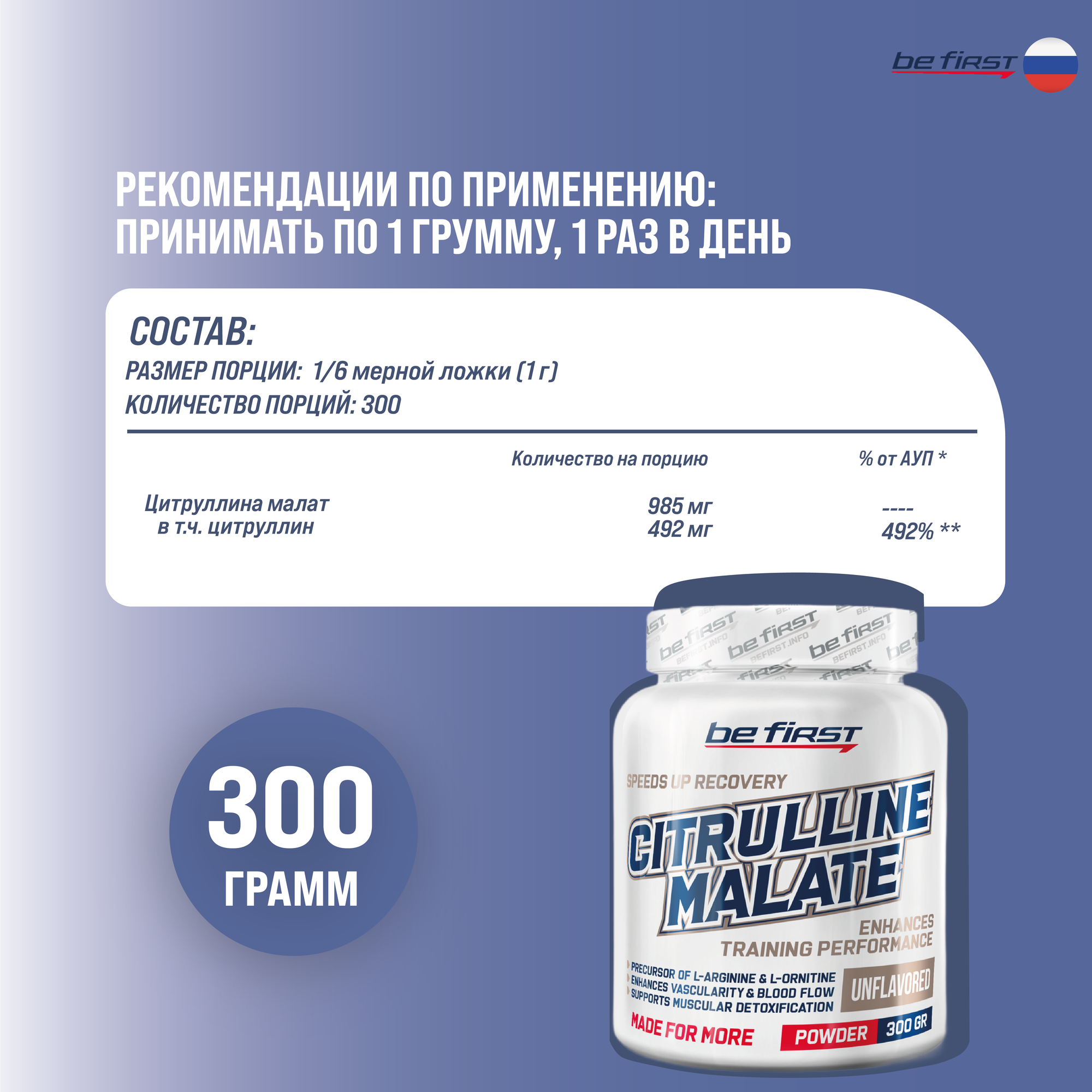 Цитруллин малат Be First Citrulline Malate Powder - 300 г, натуральный интересное: