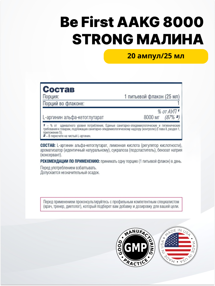Be First AAKG Strong 8000 мг 25 мл, 20 шт, вкус: малина