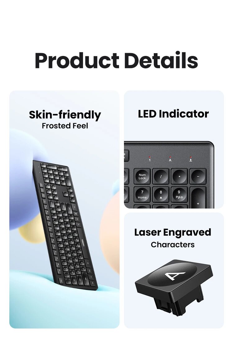 Беспроводная клавиатура UGREEN, 2,4 ГГц, 104-клавишная раскладка, эргономичная для ноутбука, настольного компьютера, Windows Mac OS, Russian Set 1 интересное:
