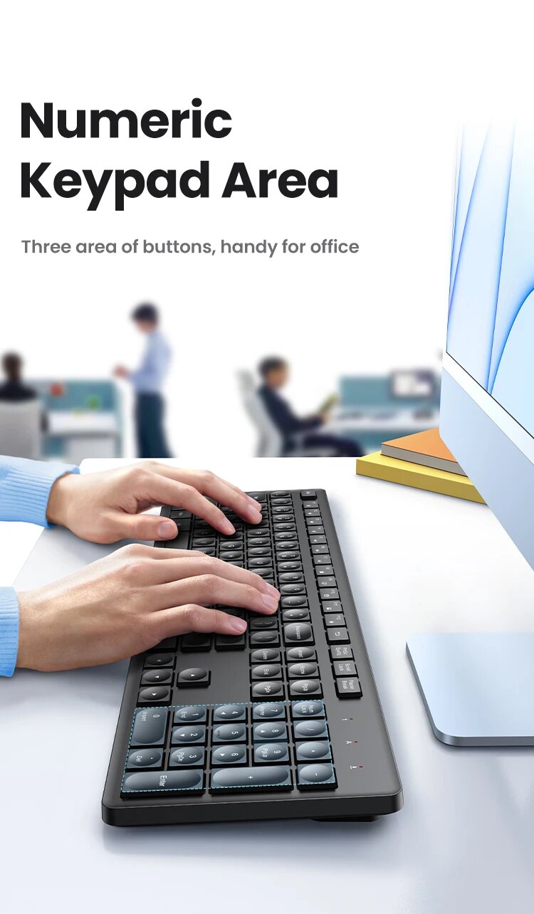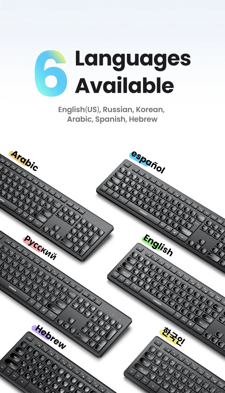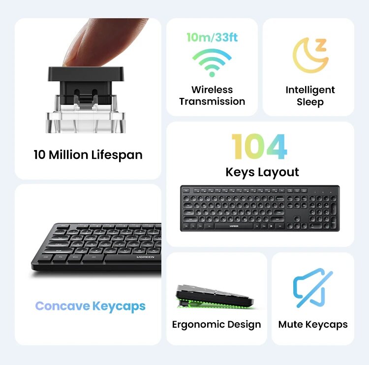 Купить Беспроводная клавиатура UGREEN, 2,4 ГГц, 104-клавишная раскладка, эргономичная для ноутбука, настольного компьютера, Windows Mac OS, Russian Set 1