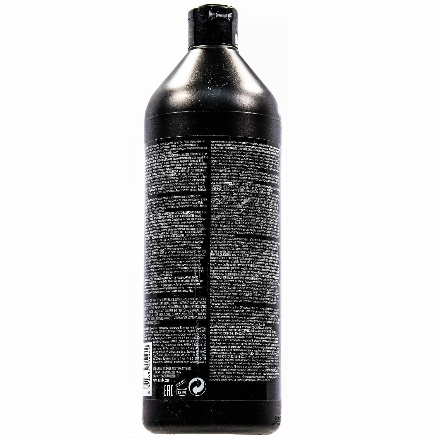 MATRIX BRASS OFF холодный блонд Шампунь 1000мл.