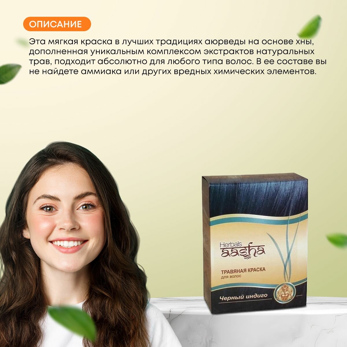 Травяная краска для волос на основе хны тон Черный индиго (hair dye) Aasha (Ааша), 60г