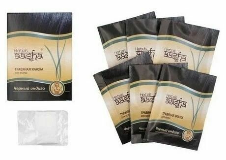 Краска для волос травяная "Чёрная" Ааша (на основе индийской хны) Aasha 6 пак. по 10 гр.