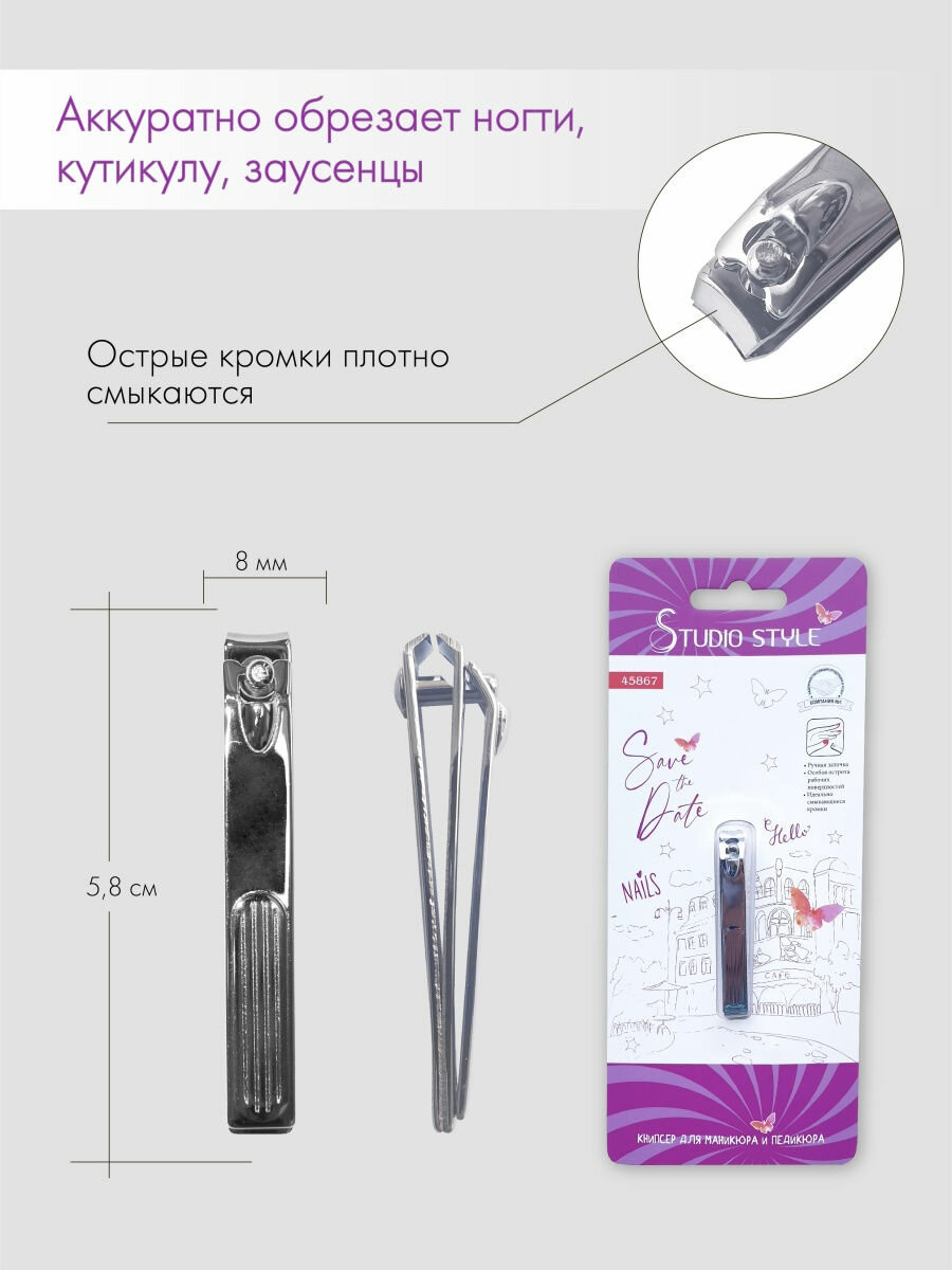STUDIO STYLE Книпсер для маникюра и педикюра компактный / Щипчики для ухода за ногтями / Клиппер интересное: