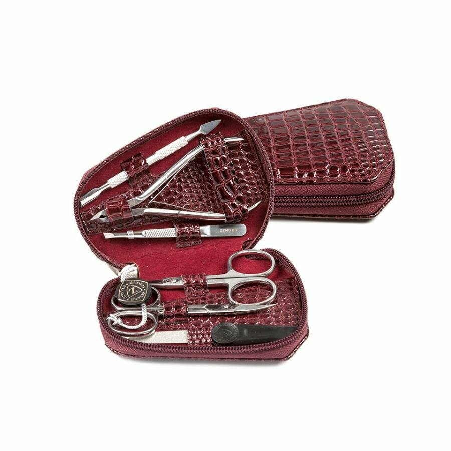 Маникюрный набор ZINGER на молнии, трапеция, MS-7103, 6 предметов, чехол бордовый крокодил