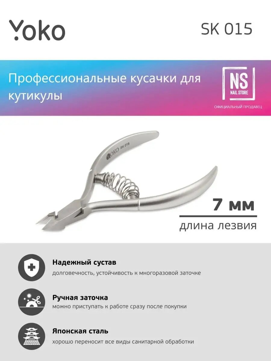 YOKO Y SK 015 Кусачки для кутикулы (японская сталь), 7 мм, спиральная пружина