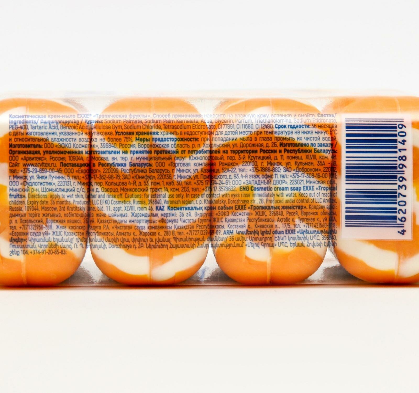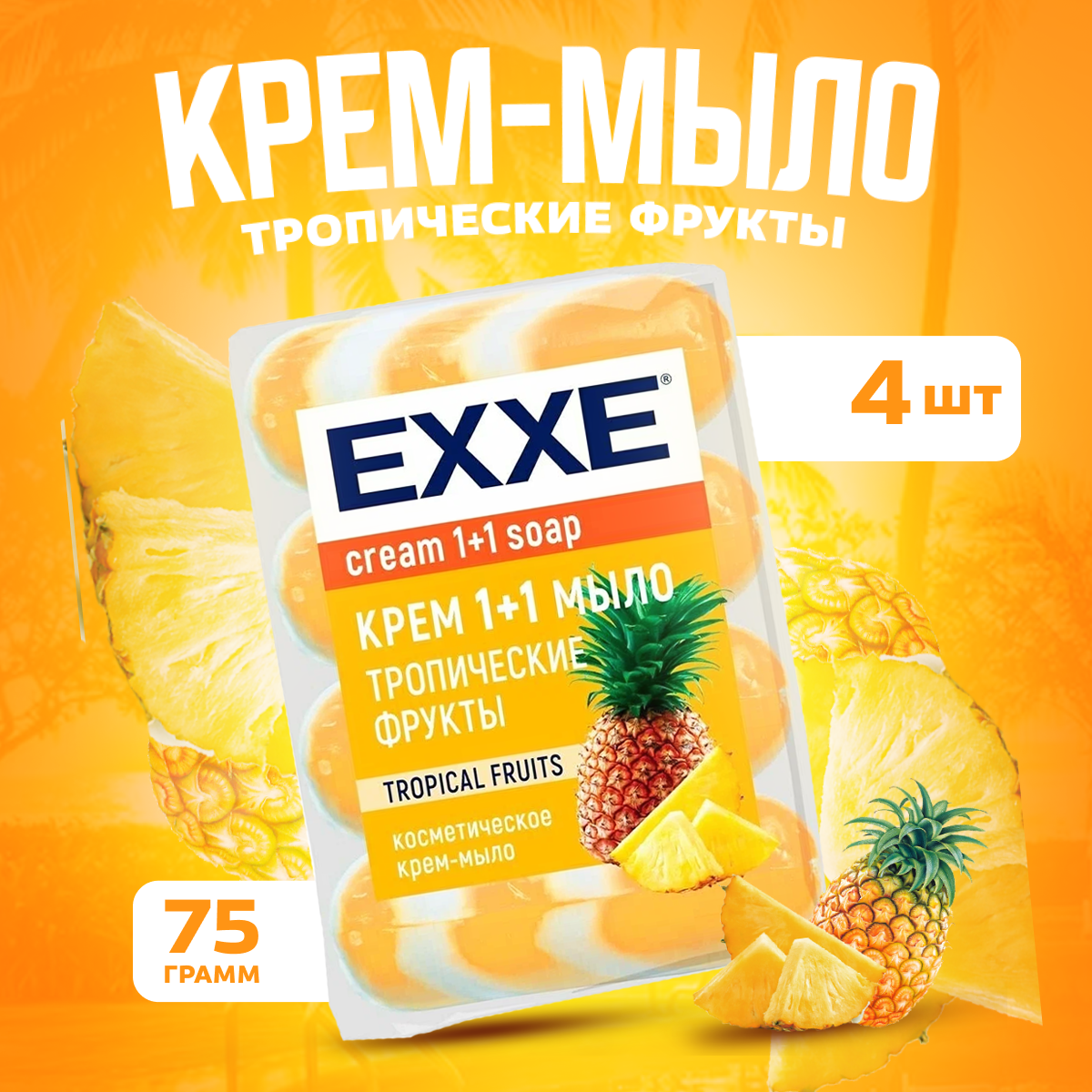 Купить EXXE Косметический крем-мыло "Тропические фрукты" 1+1, 4 штуки по 75 грамм