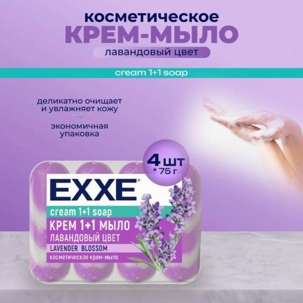 EXXE Косметический крем-мыло "Лаванда" 1+1, 4 штуки по 75 грамм