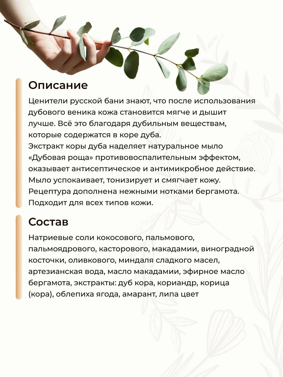 Levrana, Мыло натуральное ручной работы "Дубовая роща", 100г интересное: